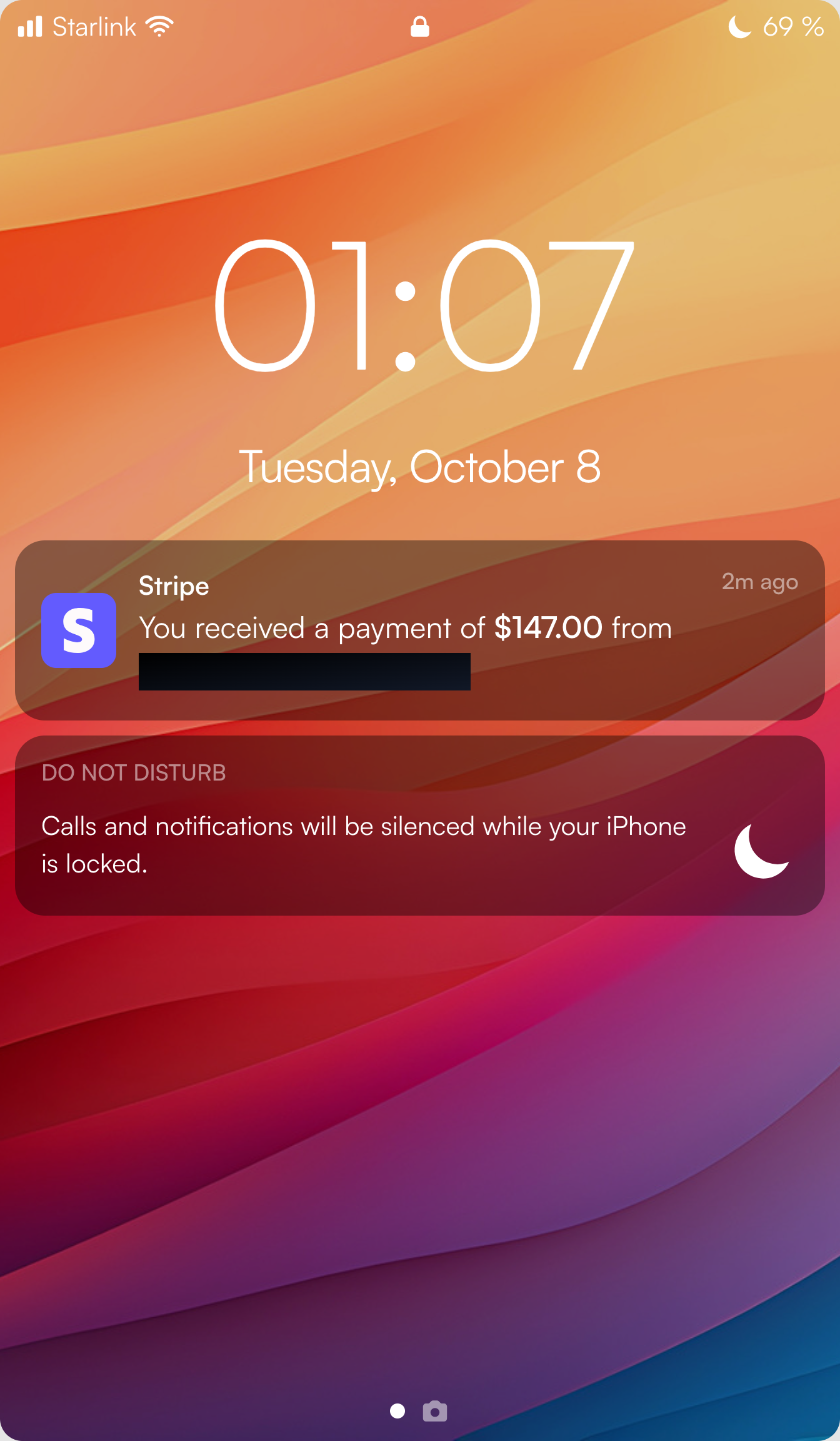 Plus, you get tons of these sweeeeet Stripe notifications… 🤩 (see screenshot below 👇🏻)
